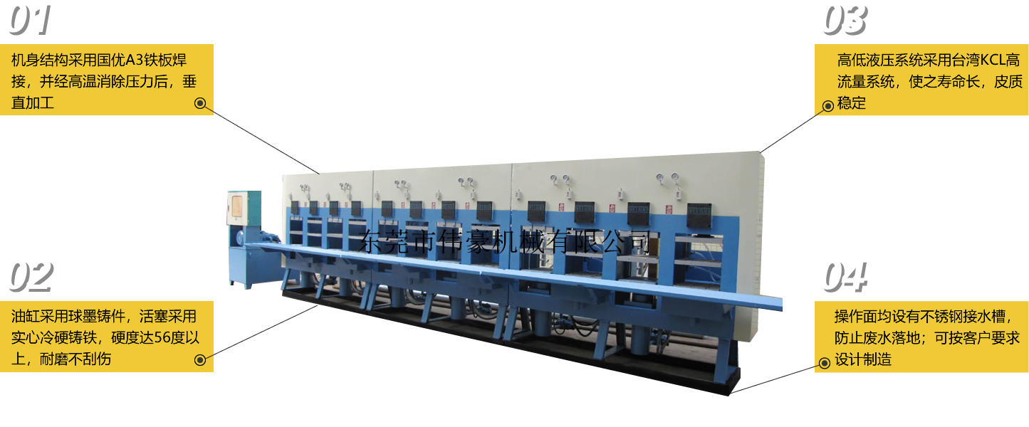 東莞市偉豪機械有限公司是一家從事各類標準和非標準油壓機的集設(shè)計、制造、銷售于一體的專業(yè)性機械制造企業(yè)。公司目前的主要產(chǎn)品有:橡膠大底油壓機、中底(MD)冷熱油壓機、四柱油壓機、框架式油壓機、EVA發(fā)泡機等,我司生產(chǎn)的機械適用于各類橡膠、鞋材、發(fā)泡等企業(yè)。外加生產(chǎn)銷售各種油壓配件,維修各種油壓機械。